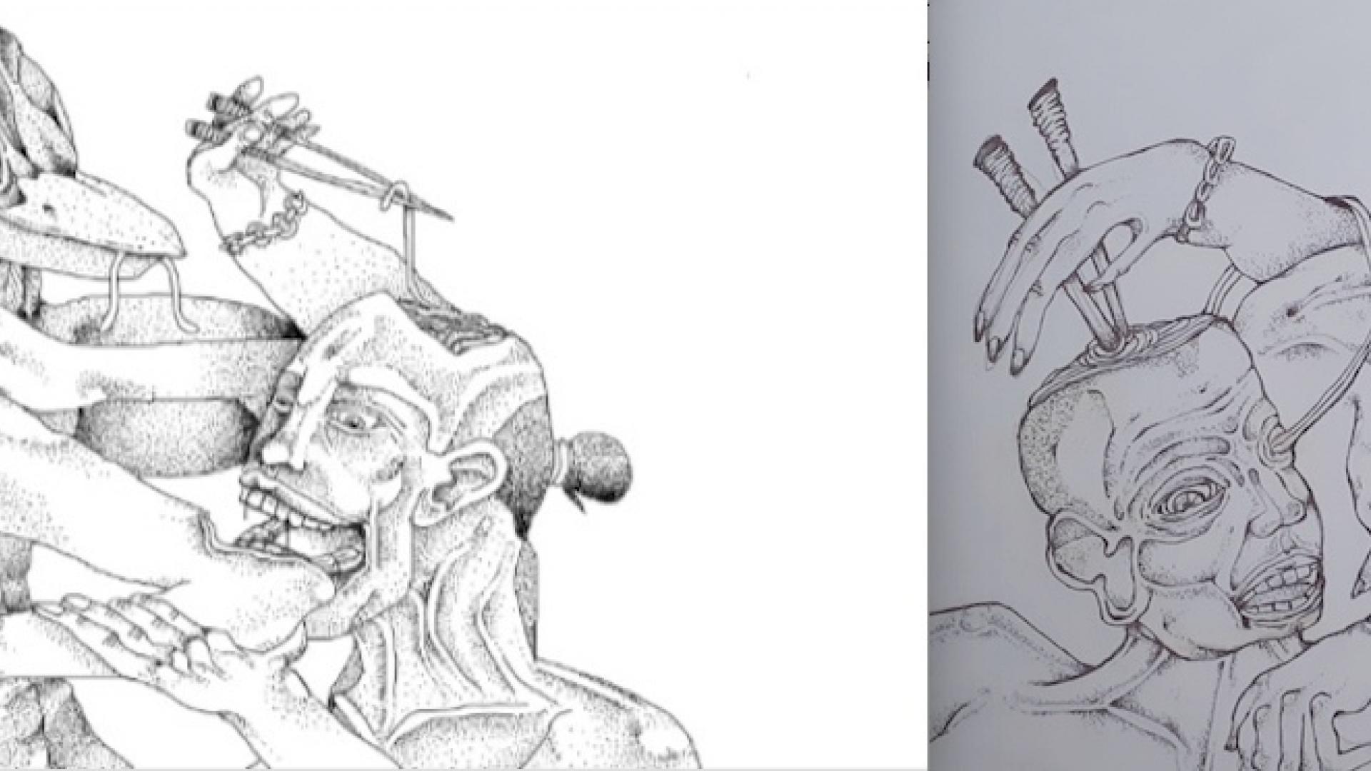 Utilise un papier pour mettre sous ta main qui dessine, pour empêcher l'encre de la forêt de déteindre