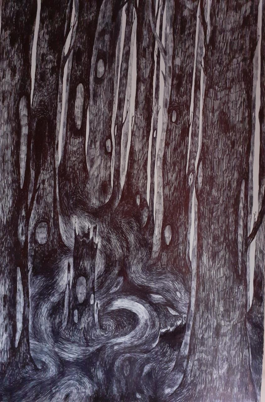 Rentre dans un automatisme, un geste mécanique et laisse ton esprit divaguer pendant que tu gratte au stylo la feuille, laisse ta respiration se réguler, laisse-toi rentrer dans ma forêt noire